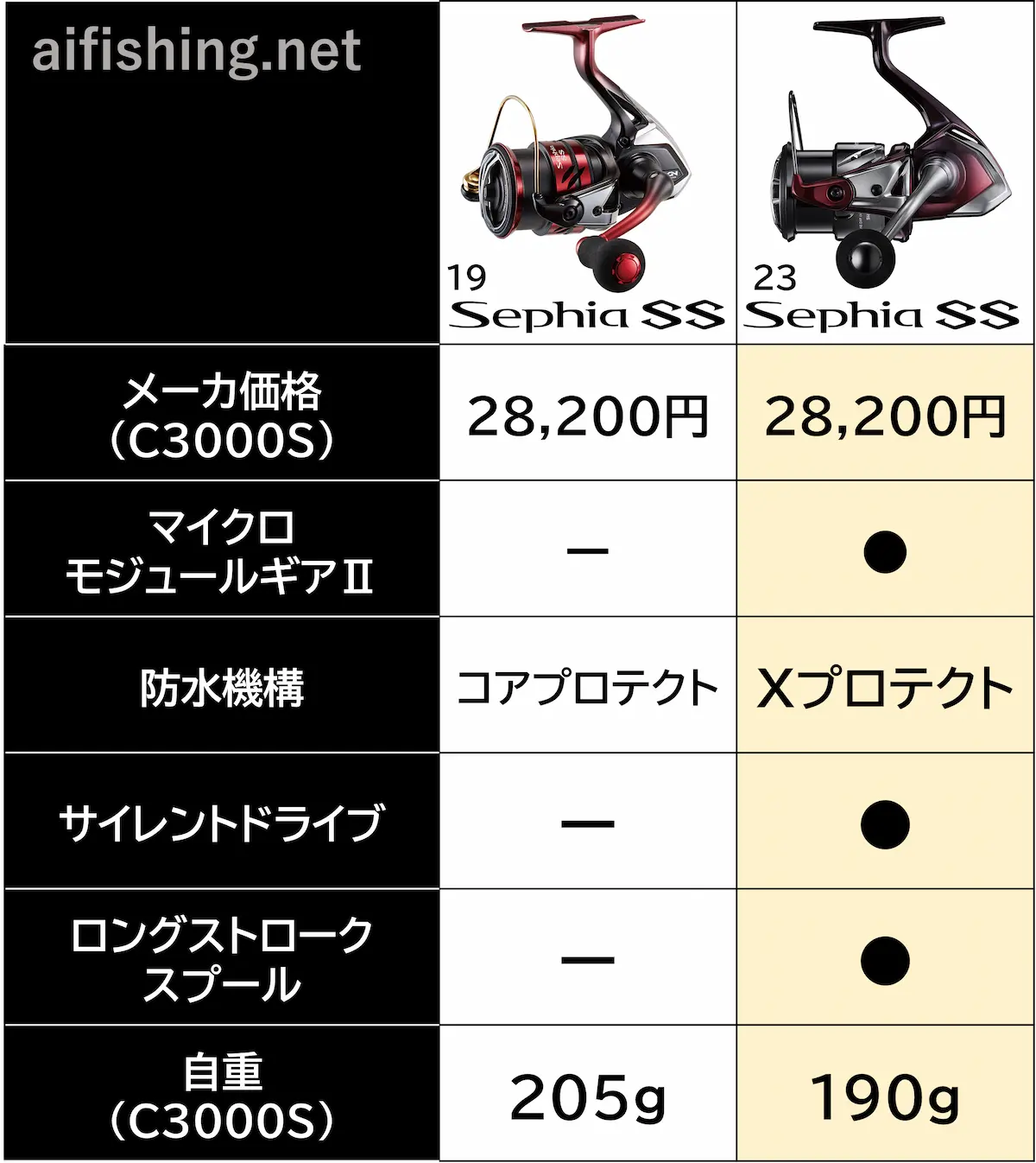 「23セフィアSS」と他のシマノ製スピニングリールとの比較