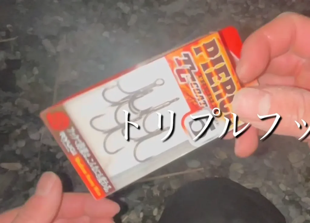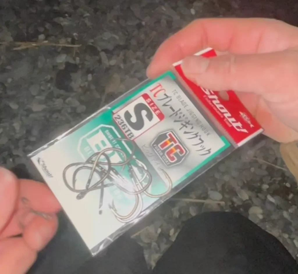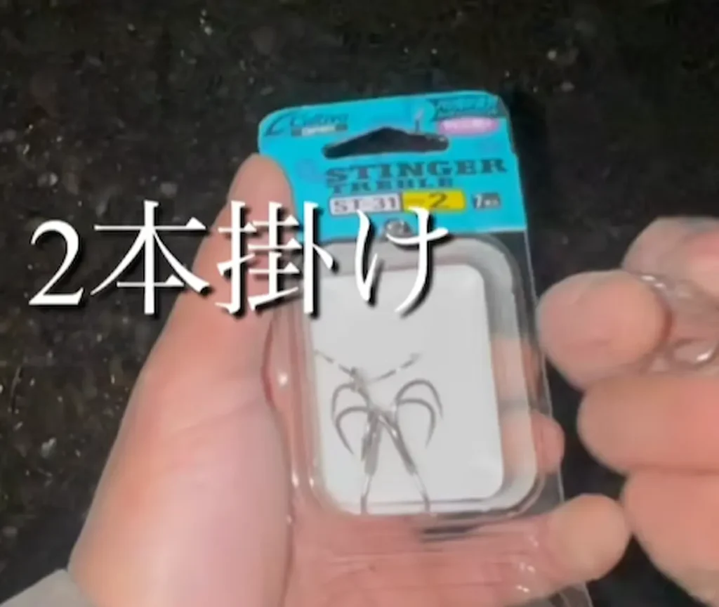 大きなエサにはトレブルフックを使われることが多いですが、ジギング用の針も試されています。