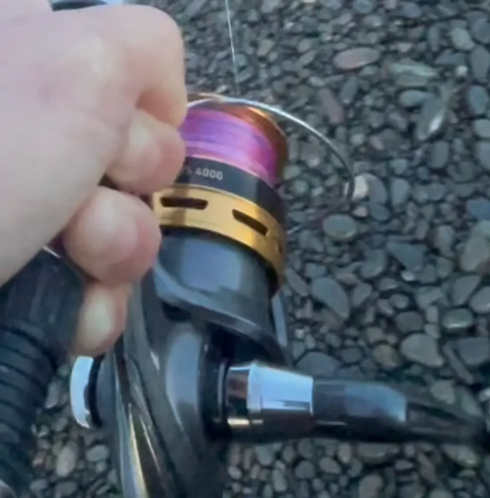 道糸はPE3号などが巻かれます。リーダーと道糸の結束はブラッドノット(通称:だいしゅきほーるど)です。